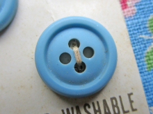 7 Vintage Le Chic Blue Plastic Four-hole Buttons, 1/2" (13mm)