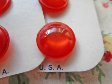 10 Vintage Casa de Leon Red-Orange Plastic Shank Buttons, 9/16" (14mm)