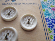 4 Vintage Jewel-Tone White Plastic Two-Hole Buttons, 5/8" (15mm)