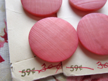4 Vintage Dusky Pink Plastic Shank Buttons, 1-1/8" (28.5mm)
