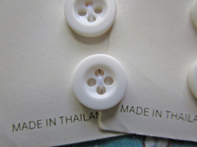 8 Vintage Streamline White Plastic Four-Hole Buttons, 7/16" (11mm)