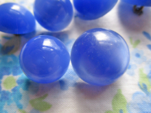 7 Vintage Blue Plastic Domed Shank Buttons, 5/8" and 3/4"