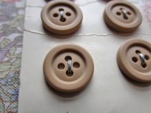 6 Vintage La Mode Tan Plastic Four-hole Buttons, 9/16" (15mm)